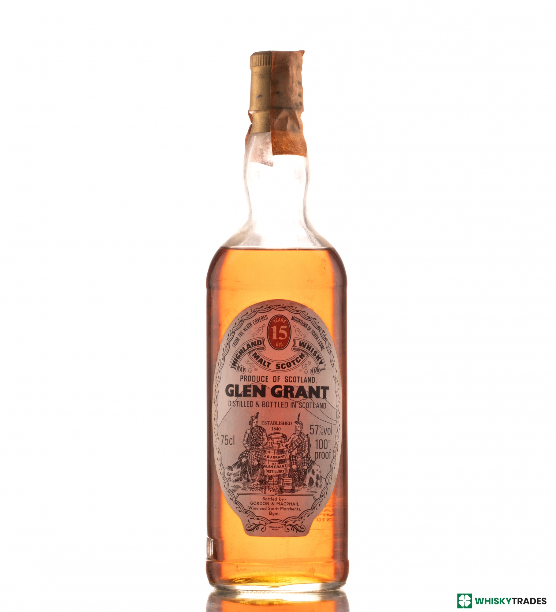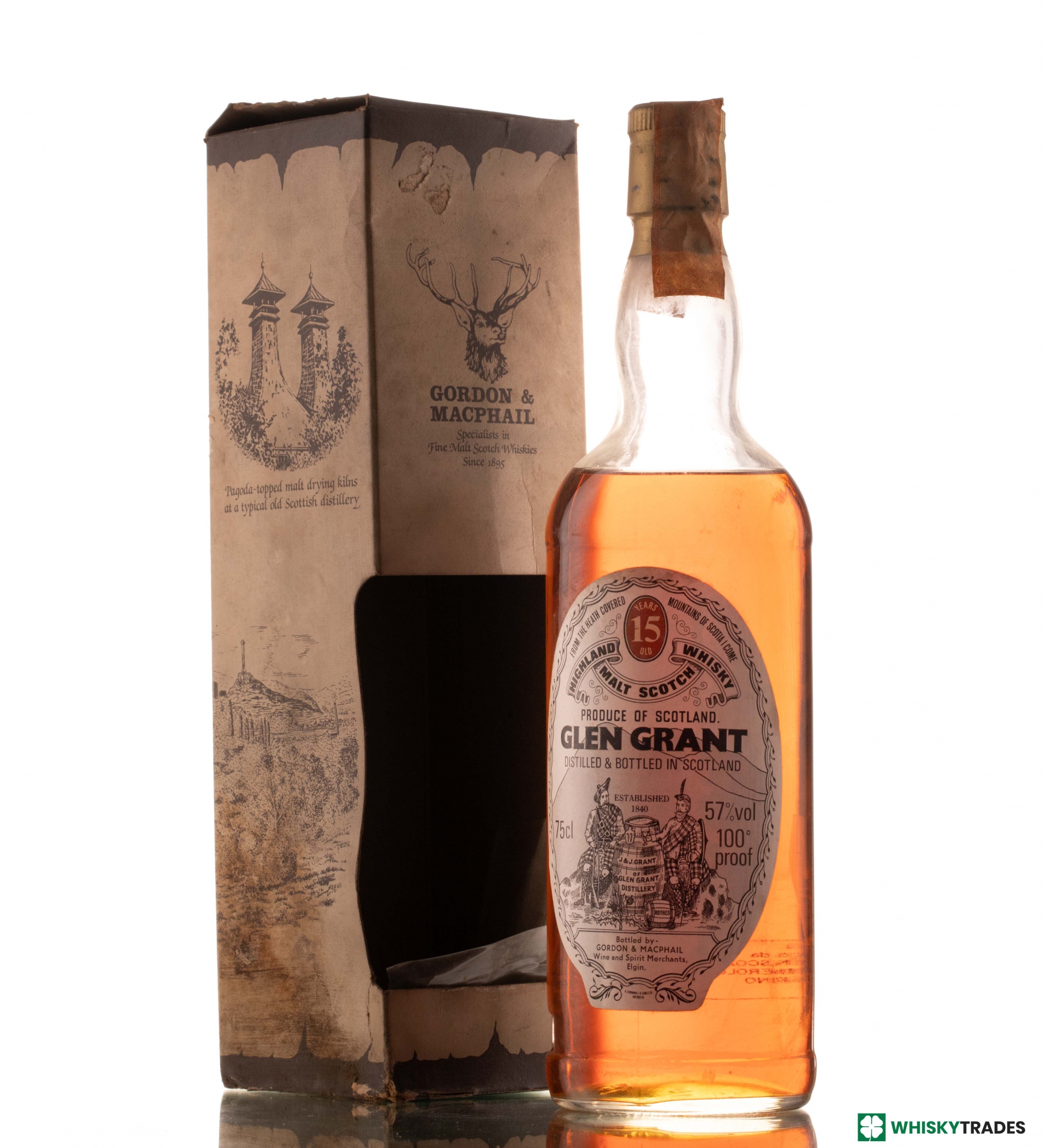 GLEN GRANT 15 YEARS OLD 57% 100 °PROOF GORDON & MACPHAIL 1980S