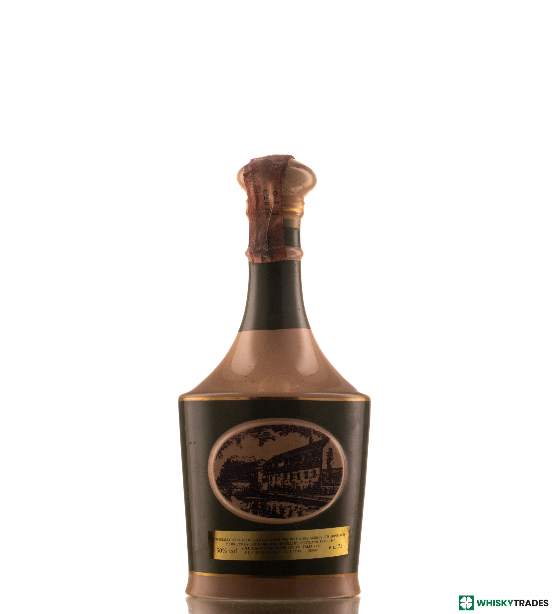 ROSEBANK 15 YEARS OLD 50% THE DISTILLERS AGENCY SPODE DECANTER 1980S / ZENITH ITALIA